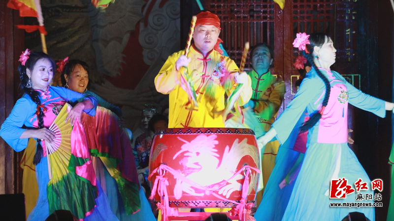 游行结束后,歌舞表演随即拉开帷幕,现场观众早已落座,场内热闹非凡。整场演出共呈现了21个精彩节目,全部由麻阳本地群众倾情演绎,极具地方特色。开场龙鼓舞《中国龙》以激昂的节奏瞬间点燃全场;一首《麻阳龙舟》更是把气氛烘托到顶点,只见一群苗家汉子手执船桨,在鼓声中舞动起来,他们时而扎稳弓步,时而奋力划桨,将麻阳盘瓠龙舟文化展现得淋漓尽致,引得观众一片喝彩。