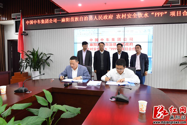 县人民政府副县长夏华与中国中车集团公司华轩水务有限公司总经理罗先忠进行了正式签约。