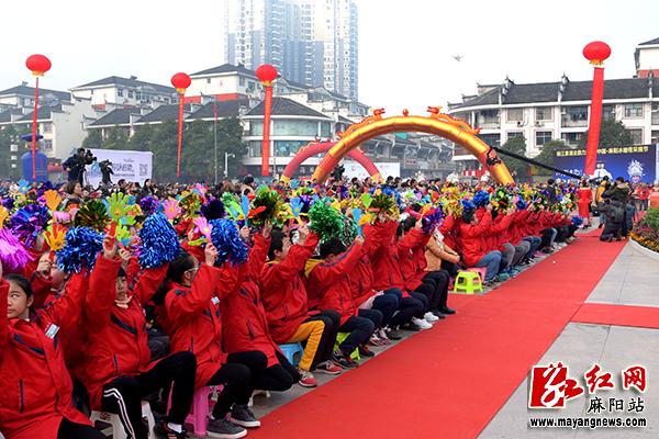 12月9日,记者在2016年中国·麻阳冰糖橙采摘节开幕式现场看到,来自麻阳本地及其他各地的近5000名观众到场观看,共同为演出喝彩助阵。美轮美奂的舞台设计,精彩刺激的杂技表演,富有民族特色的歌舞演出,引得全场观众拍手称赞,纷纷拿出手机记录精彩瞬间。