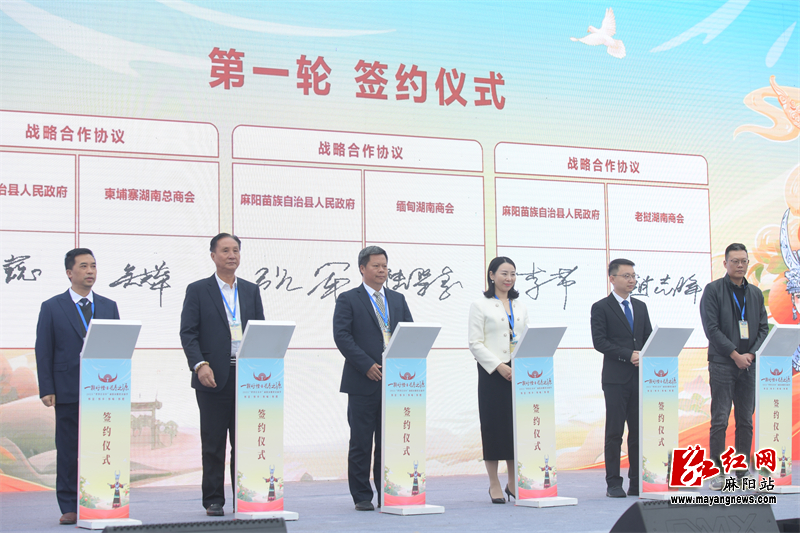 活动现场,麻阳苗族自治县人民政府与柬埔寨湖南总商会、缅甸湖南商会、老挝湖南商会、越南湖南企业联合会、香港益农健实业发展有限公司、湖南盛朋国际贸易有限公司进行签约;麻阳蓝凤凰、果果绿、三农兄弟等9家公司与中东韩亿股份有限公司、阿联酋中国农产品协会、香港得亿利鲜果批发公司等15家外地经销企业签订购销合同,销售柑橘3.26万吨,价值2.28亿元。活动宣布了麻阳冰糖橙“橙王”评选结果并颁奖,为麻阳冰糖橙网红推介官和麻阳冰糖橙销售大使授证。现场还举行了麻阳冰糖橙中东国际班列发车仪式,麻阳冰糖橙“出湘跨海”,搭乘专车首发直供香港,从怀化国际陆港新通道搭乘专列驶向中东,构建起国内国际双循环新发展格局。