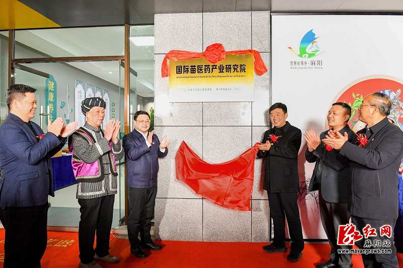 湖南中医药大学党委书记戴爱国与县委书记江涛共同为国际苗医药产业研究院揭牌