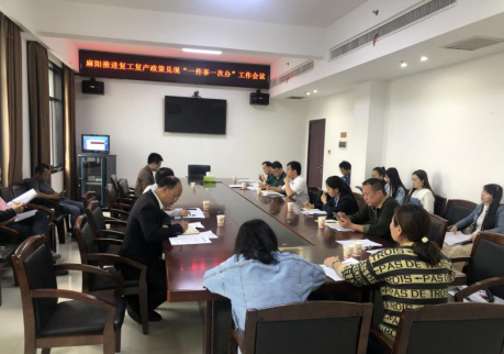 (图为麻阳推进复工复产政策兑现“一件事一次办”工作会议)