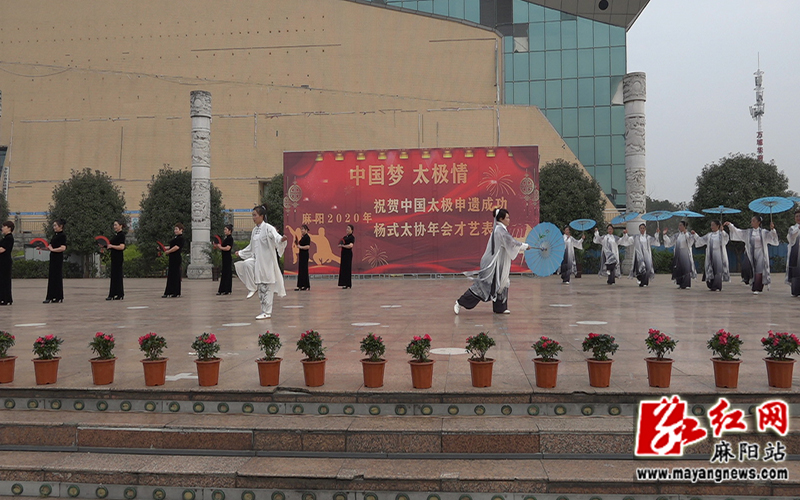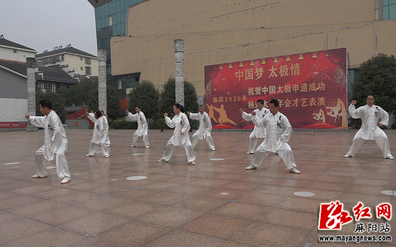 为庆祝太极拳列入联合国教科文组织人类非物质文化遗产代表作名录,12月27日,麻阳杨式太极拳协会在县城锦江广场举办以“中国梦、太极情”为主题的太极运动展演活动,表达广大太极拳爱好者对太极拳申遗成功的喜悦心情。