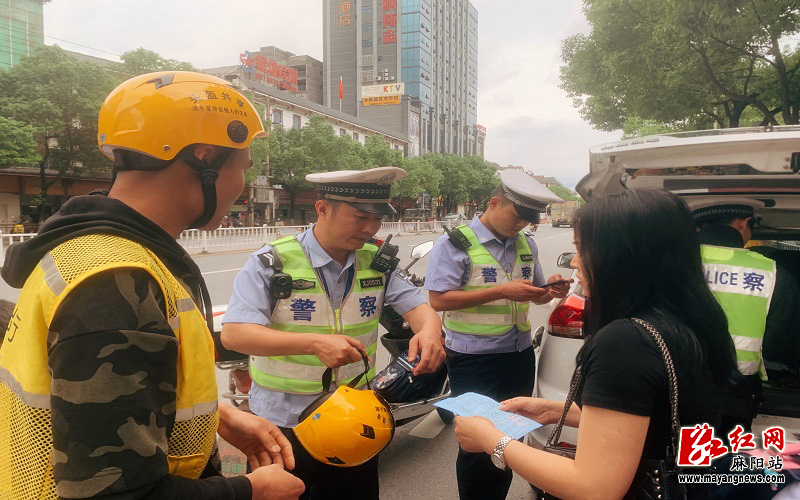 麻阳交警联合松果电单车开展“一盔一带”安全活动