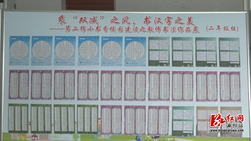 12月17日上午,记者在麻阳第二锦江小学教学楼内看到,一张张工整漂亮的书法作品整齐地张贴在展示栏上,这是该校学生们学习“汉字拟人书写法”特色课程五天后的成果。