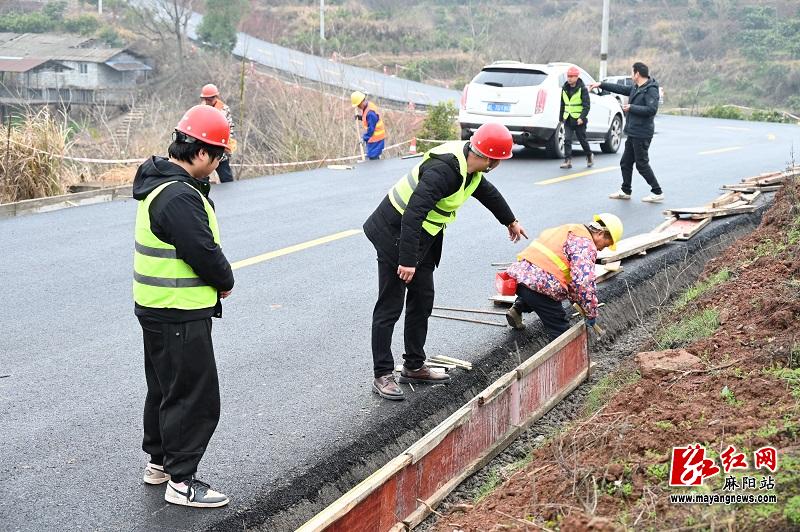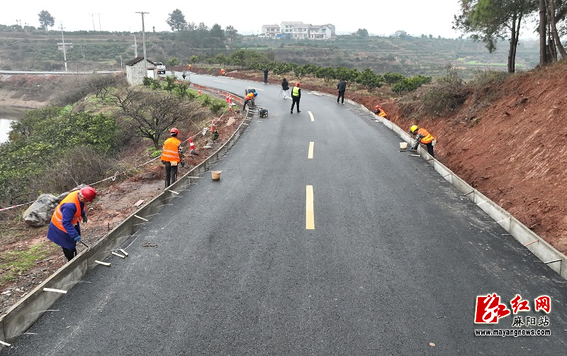 项目经理周金勇介绍道:“项目起点兰里渡口,终点和平溪乡政府,全长4.672公里,自去年9月开工以来,已完成路面主体建设,目前正在进行路肩作业,下一步进行安防施工,预计到3月底全部完成并投入使用。”