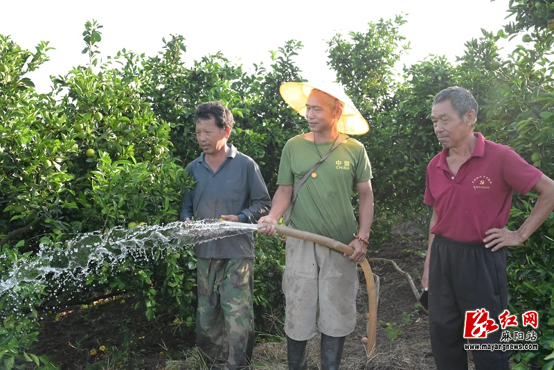 在园艺场的另一片果园里,员工路家河正仔细检查着自家果园里每一棵柑橘树的灌溉情况。“多亏政府帮忙安装了电排,解了燃眉之急。”路家河透露,虽然抗旱辛苦,但回报可观——个头匀称的16万斤柑橘已被订购一空。