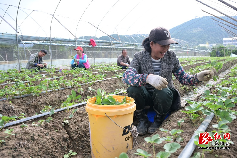深秋时节,在麻阳苗族自治县隆家堡乡步云坪村云龙草莓园大棚内,一派暖意融融的繁忙景象。这片从2018年发展起来、占地30多亩的草莓园,由刘安长、骆宪春、骆冬梅等5户村民共同组建的合作社经营,如今已成为当地小有名气的“甜蜜产业”。