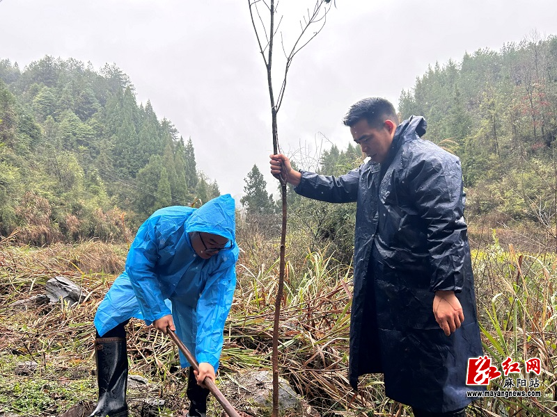 春和景明,细雨霏霏。3月17日,板栗树乡党委、政府组织全体干部职工、板栗树村两委成员、生态护林员开展义务植树活动,用双手种出绿色希望,绘就生态乡村新画卷。