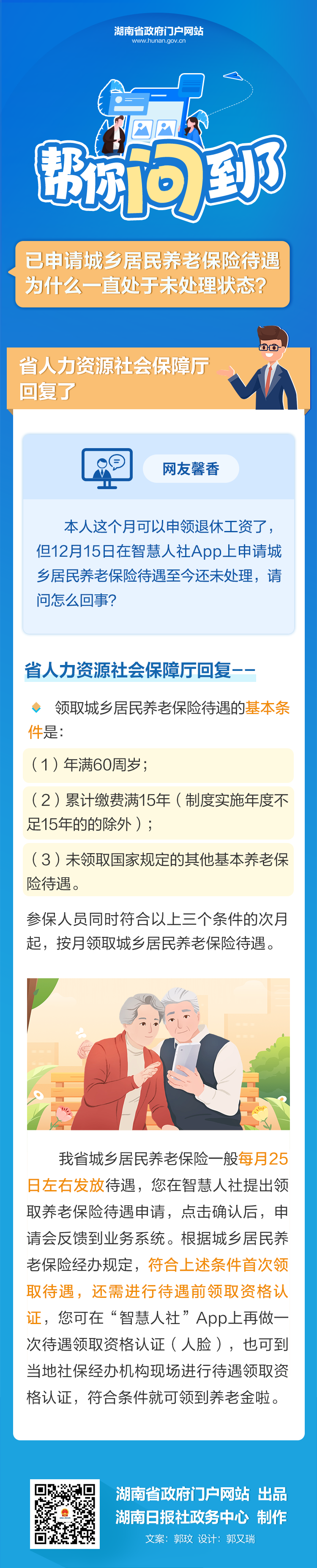 已申请城乡居民养老保险待遇为什么一直处于未处理状态?帮你问到了! 麻阳苗族自治县人民政府 http://www.mayang.gov.cn 发布时间: 2026-01-06 14:18 【字体:大 小】 分享到 来源:湖南省人民政府门户网站 作者: