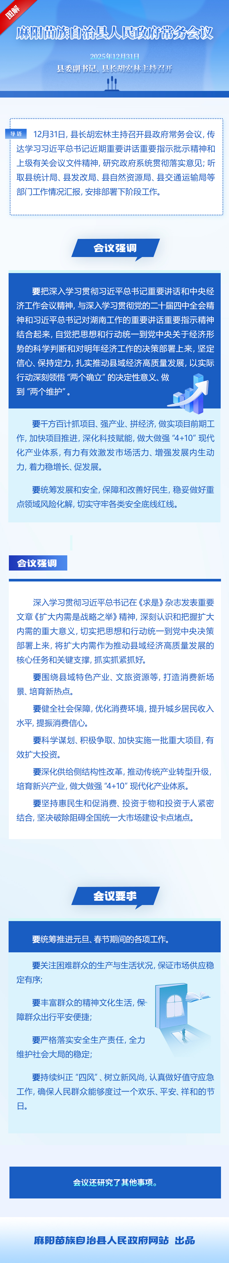 图解:2025年12月31日麻阳苗族自治县人民政府常务会议 麻阳苗族自治县人民政府 http://www.mayang.gov.cn 发布时间: 2026-01-05 15:01 【字体:大 小】 相关会议 展开 胡宏林主持召开县人民政府常务会议(12月31日) 分享到 来源:麻阳县政务服务中心 作者: