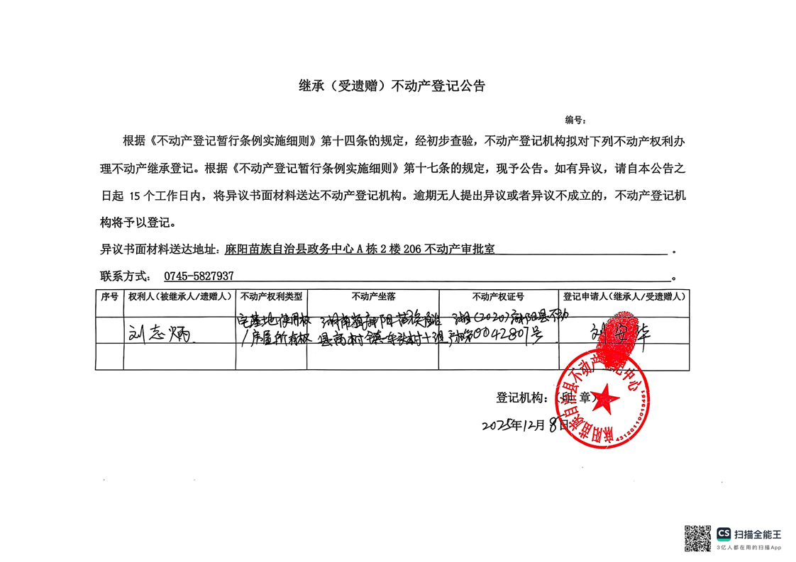 刘安华继承公示