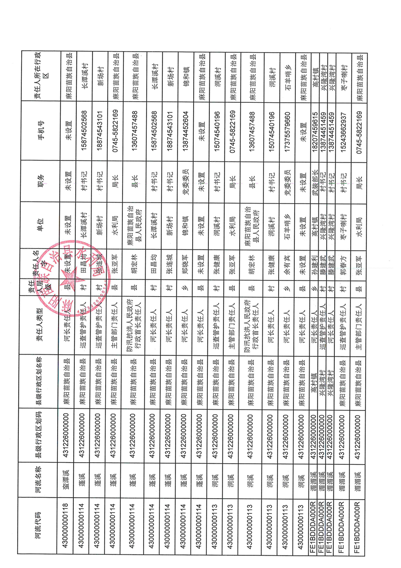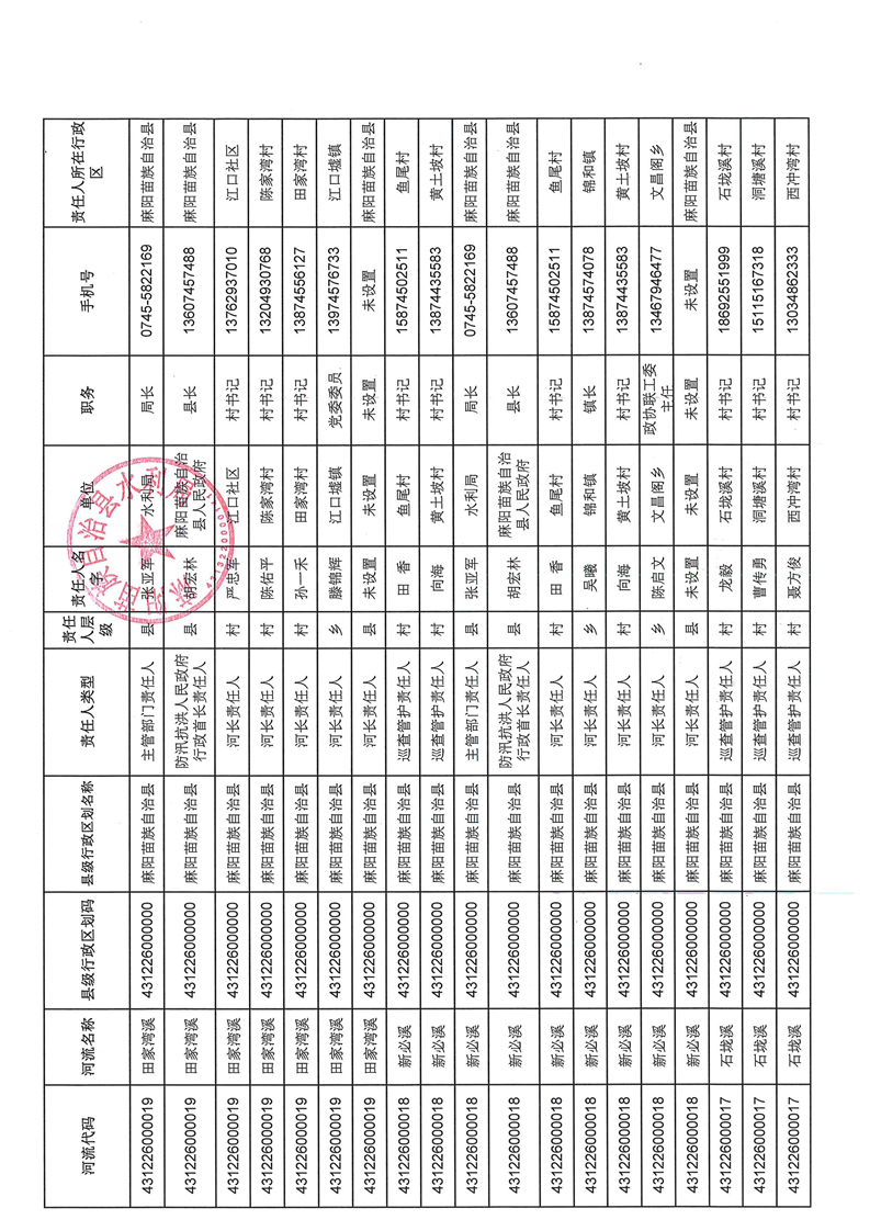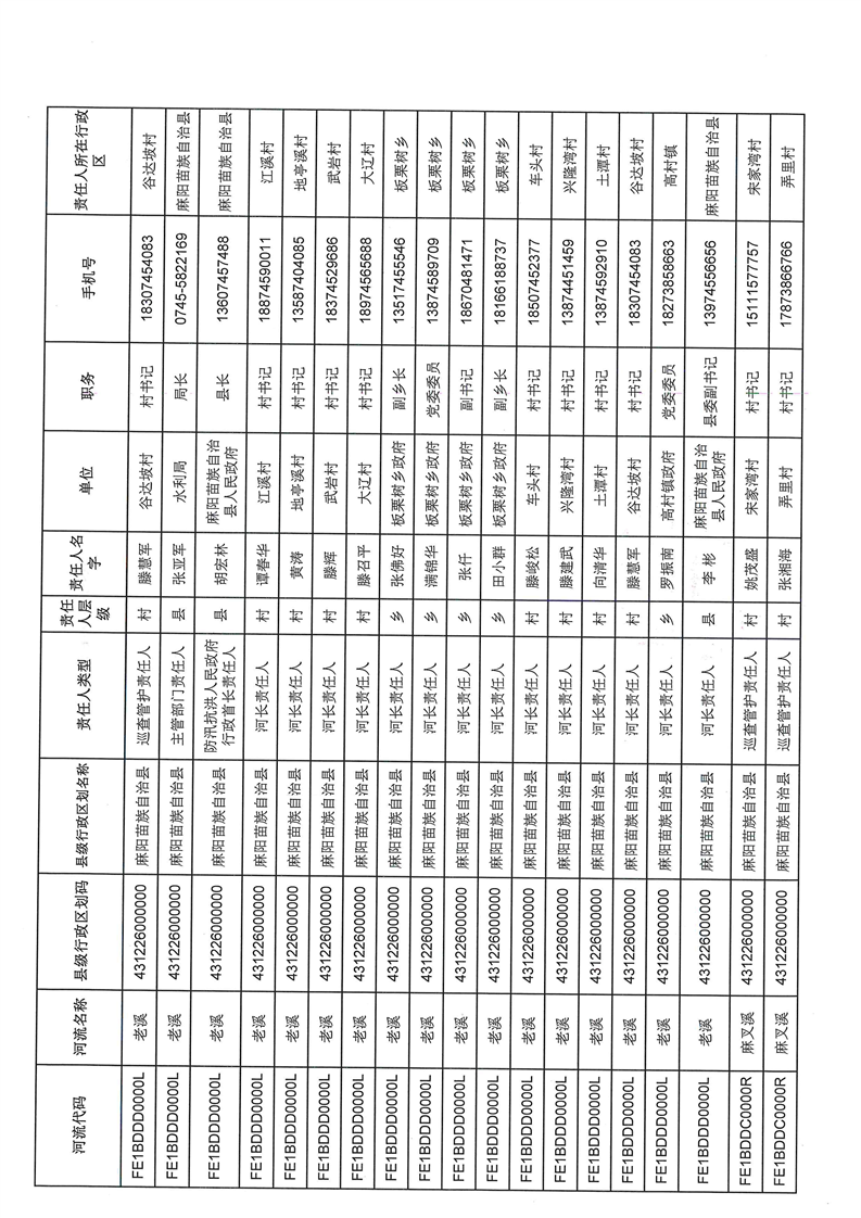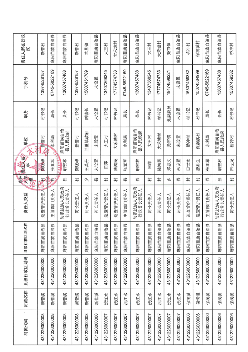麻阳苗族自治县山区河道四个责任人 麻阳苗族自治县人民政府 http://www.mayang.gov.cn 发布时间: 2023-10-31 09:17 【字体:大 小】 分享到 来源:麻阳县水利局 作者: