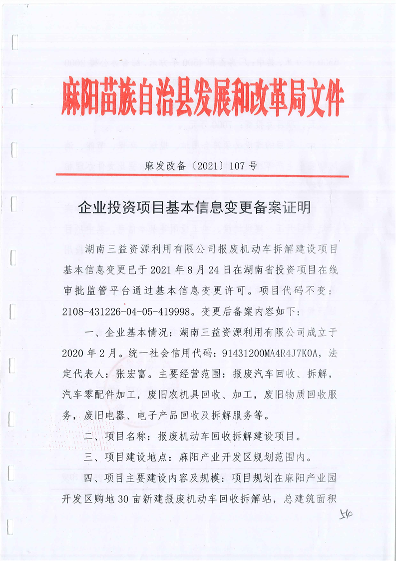企业投资项目基本信息变更备案证明 麻阳苗族自治县人民政府 http://www.mayang.gov.cn 发布时间: 2021-08-25 15:51 【字体:大 小】 分享到 来源:麻阳县发改局 作者: