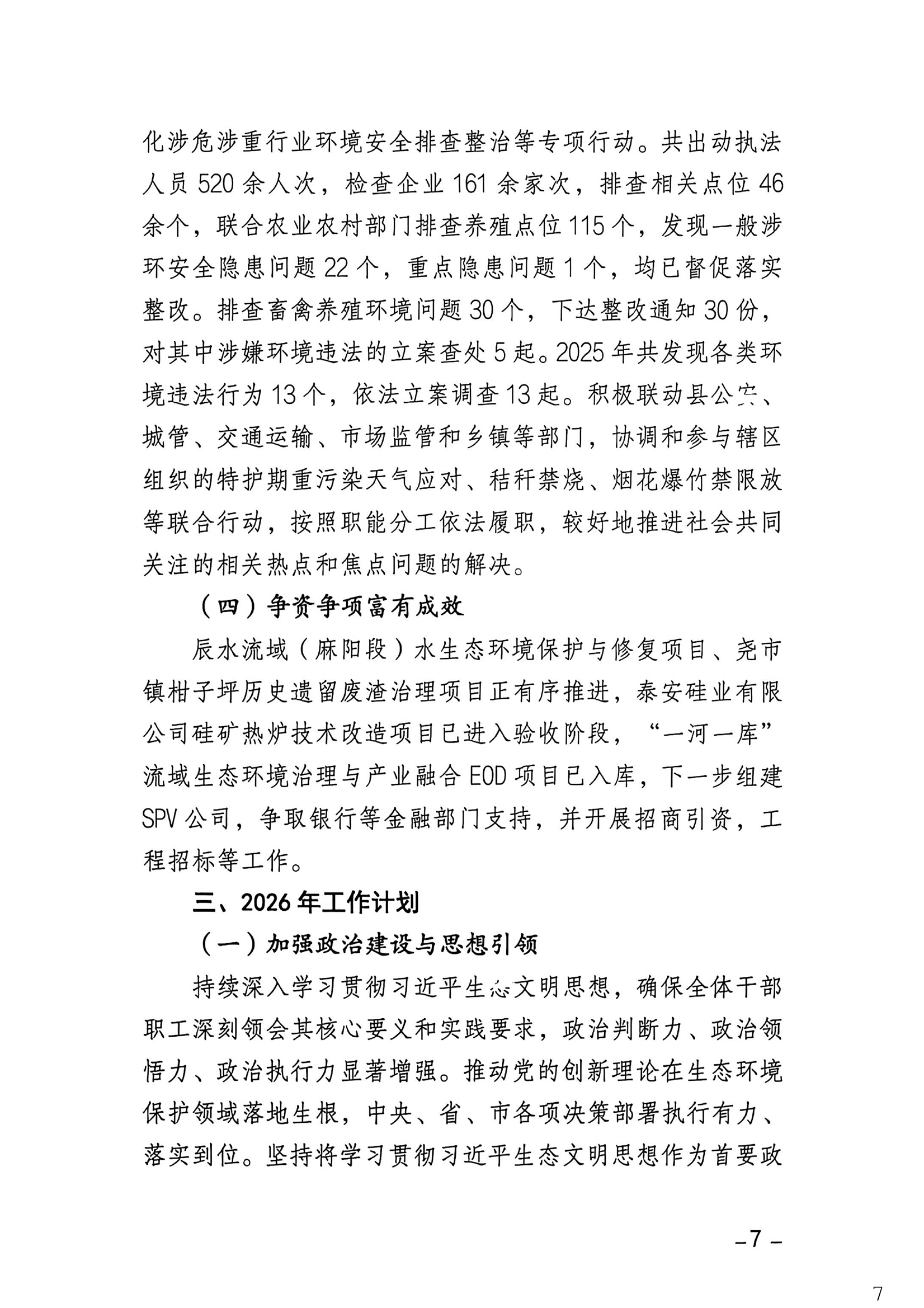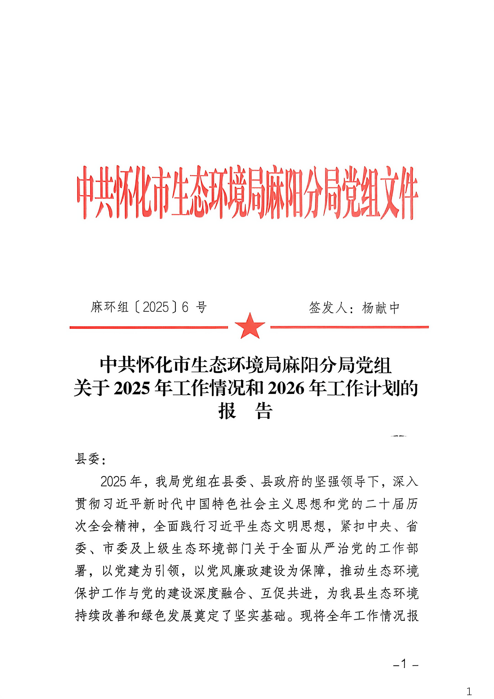怀化市生态环境局麻阳分局2025年工作情况和2026年工作计划报告 麻阳苗族自治县人民政府 http://www.mayang.gov.cn 发布时间: 2026-01-04 15:58 【字体:大 小】 分享到 来源:市生态环境局麻阳分局 作者: