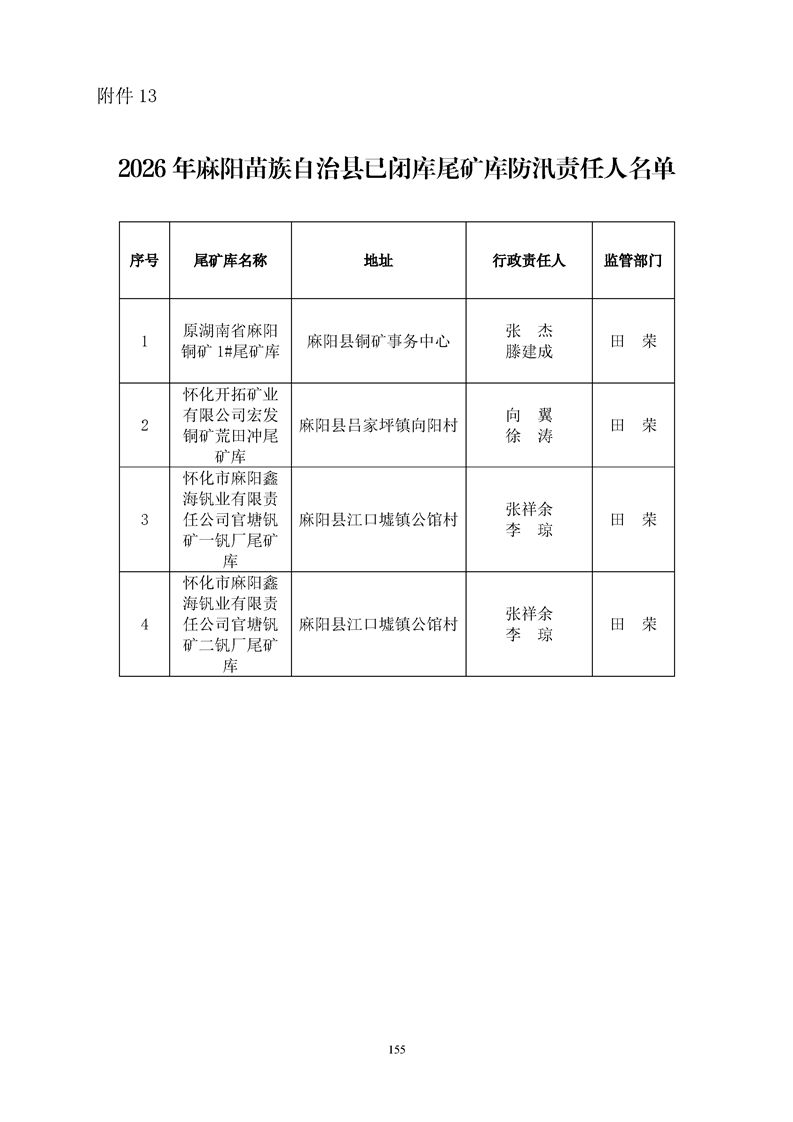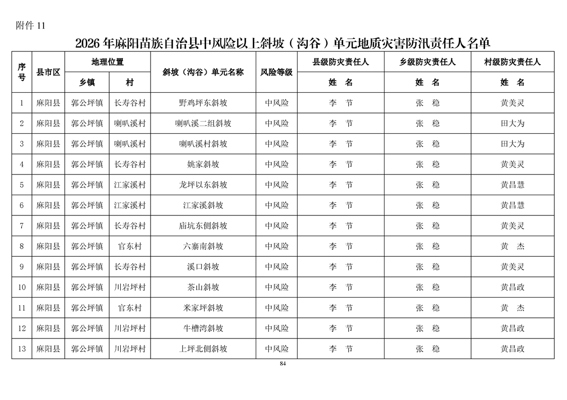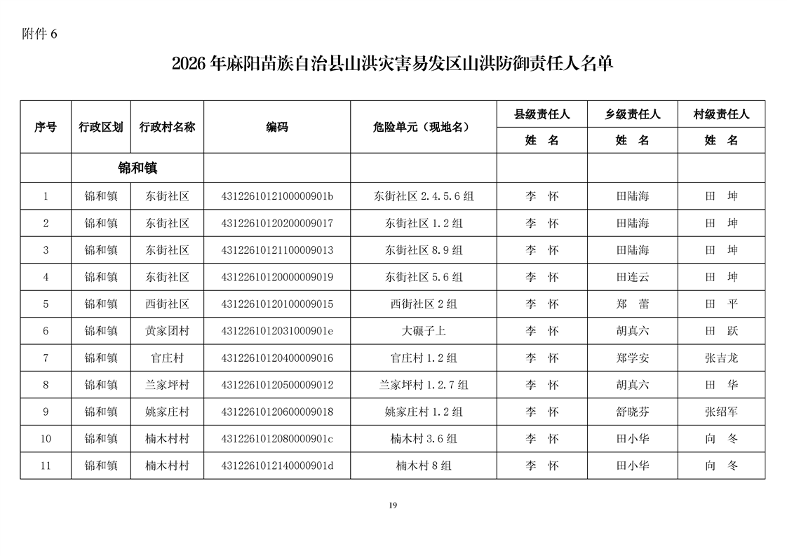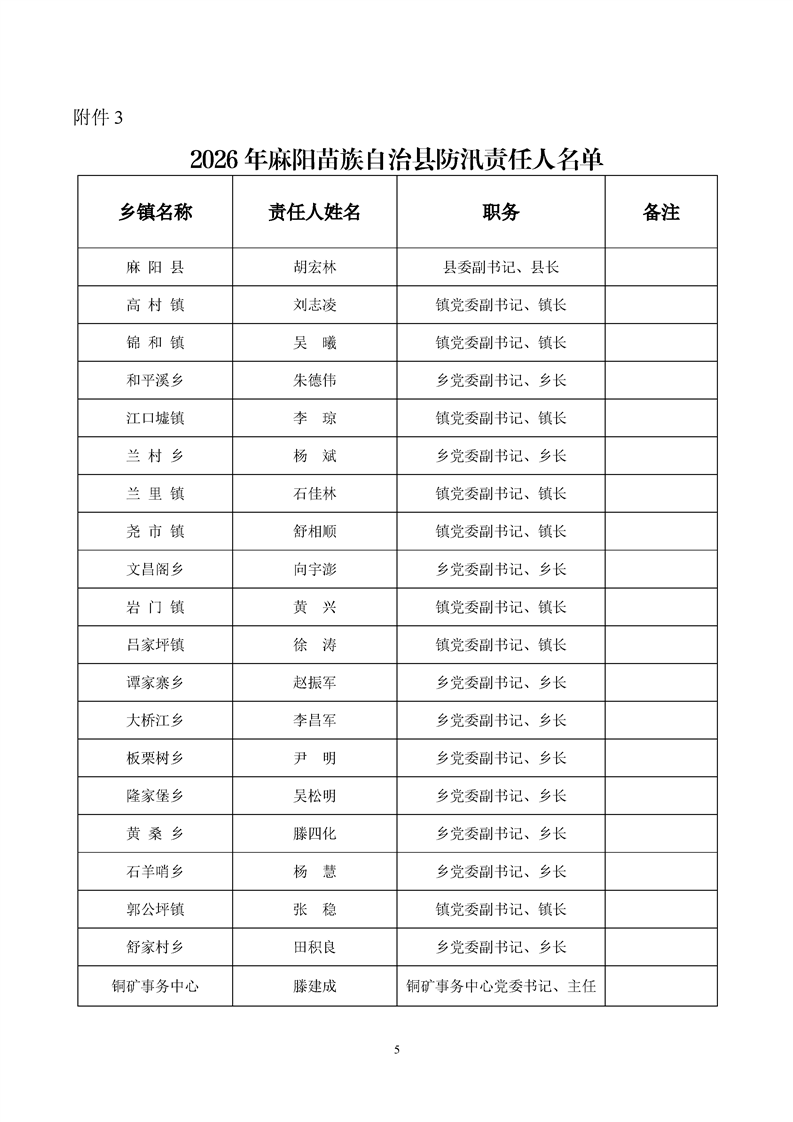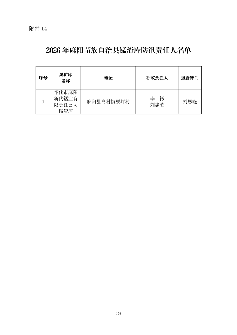 麻应安委〔2026〕17号关于明确2026年全县防汛抗旱责任人的通知 麻阳苗族自治县人民政府 http://www.mayang.gov.cn 发布时间: 2026-04-14 10:46 【字体:大 小】 分享到 来源:麻阳县应急管理局 作者: