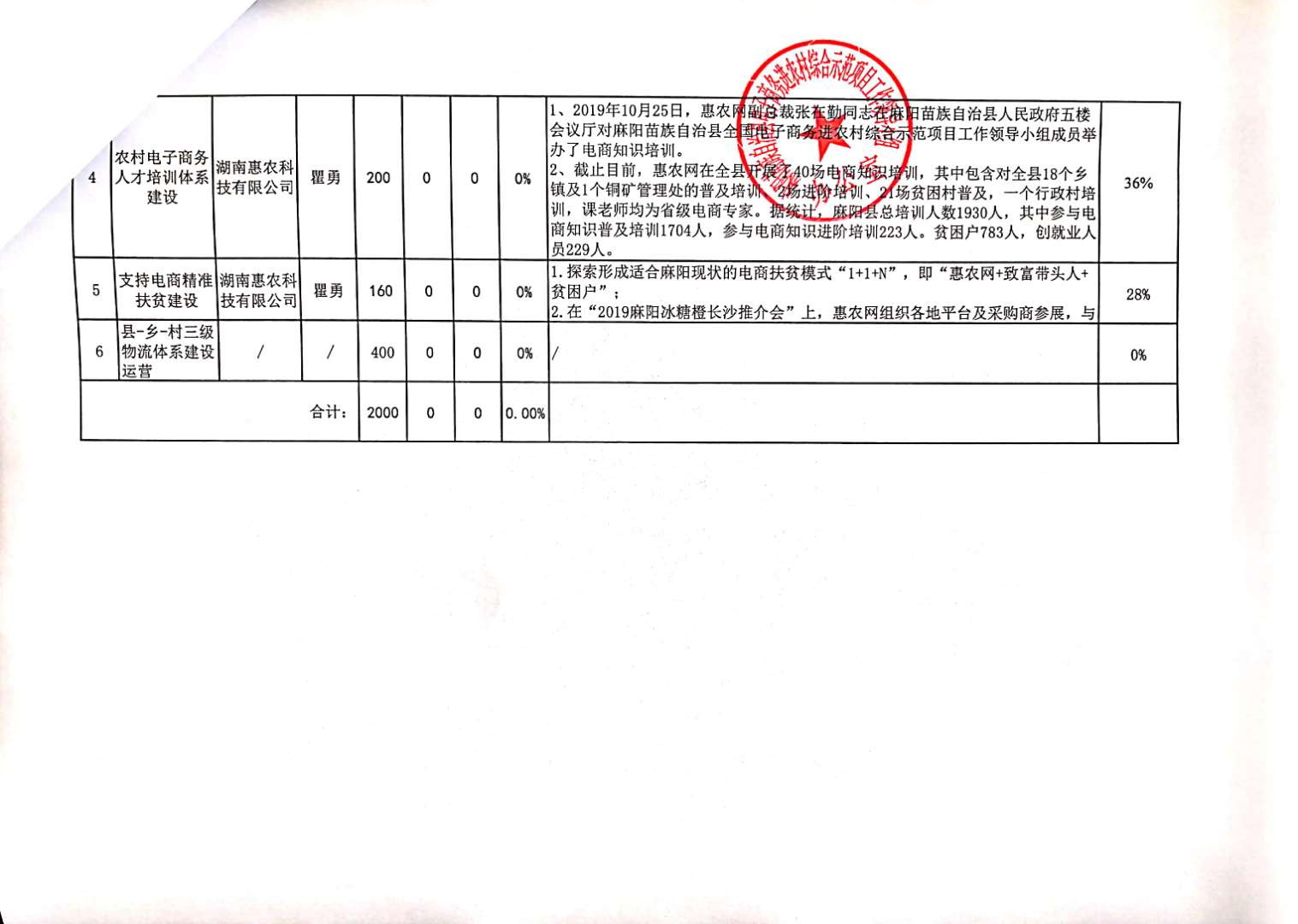 麻阳苗族自治县电子商务进农村综合示范项目建设进度及资金拨付进度公示表 麻阳苗族自治县人民政府 http://www.mayang.gov.cn 发布时间: 2019-12-07 10:59 【字体:大 小】 分享到 来源:麻阳县商务科技和工业信息化局 作者: