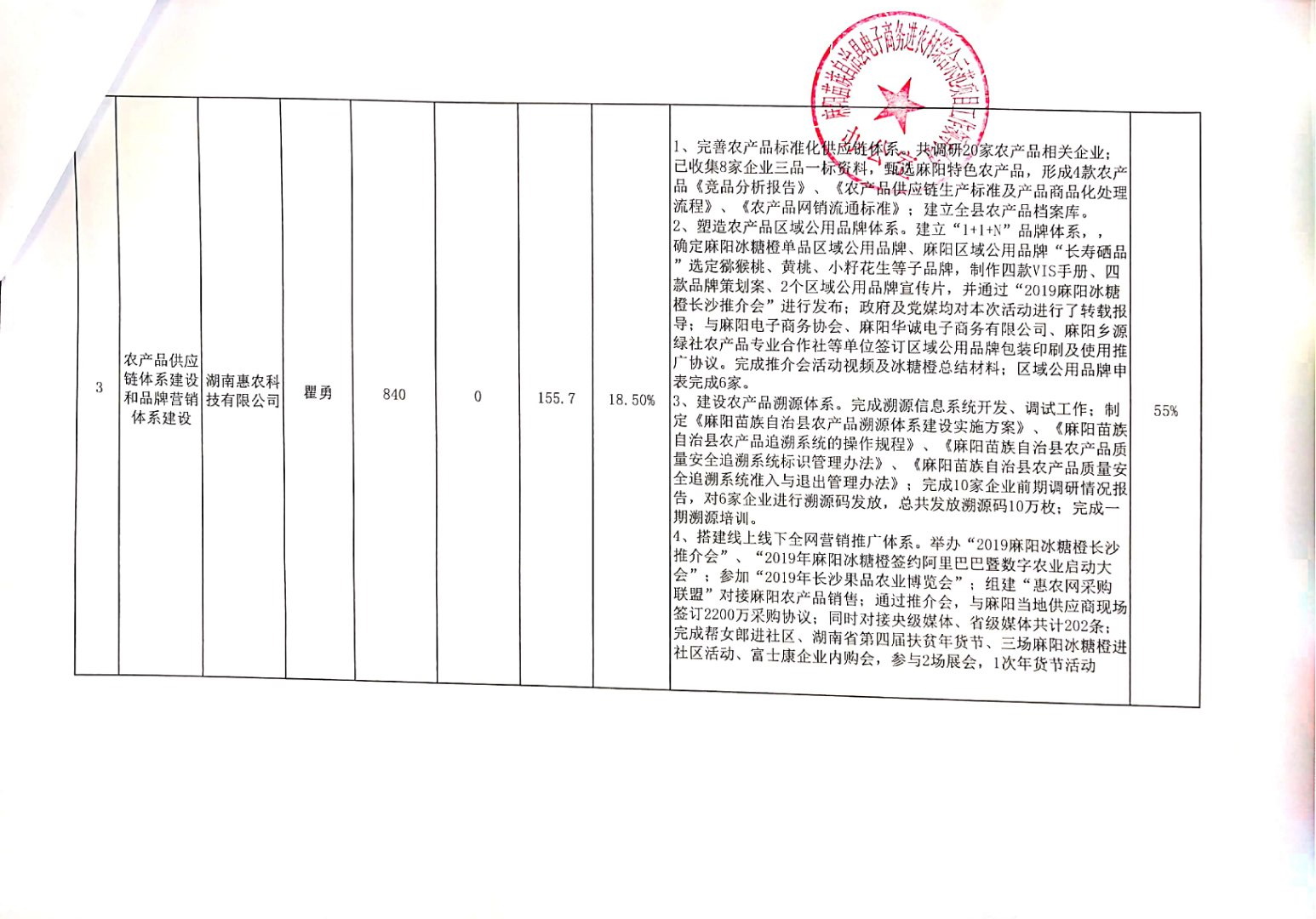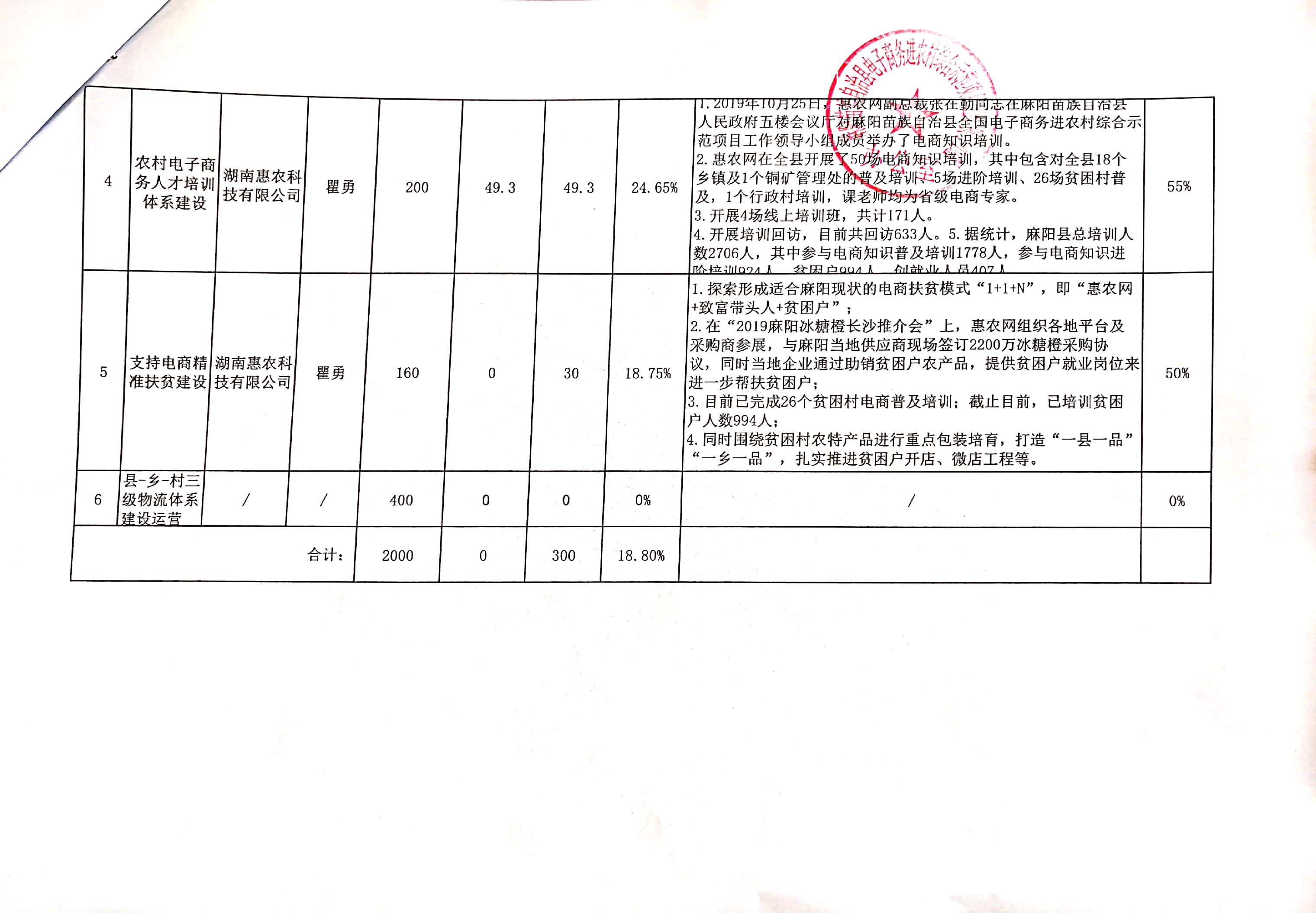 麻阳苗族自治县电子商务进农村综合示范项目建设进度及资金拨付进度公示表 麻阳苗族自治县人民政府 http://www.mayang.gov.cn 发布时间: 2020-02-18 10:08 【字体:大 小】 分享到 来源:麻阳县商务科技和工业信息化局 作者: