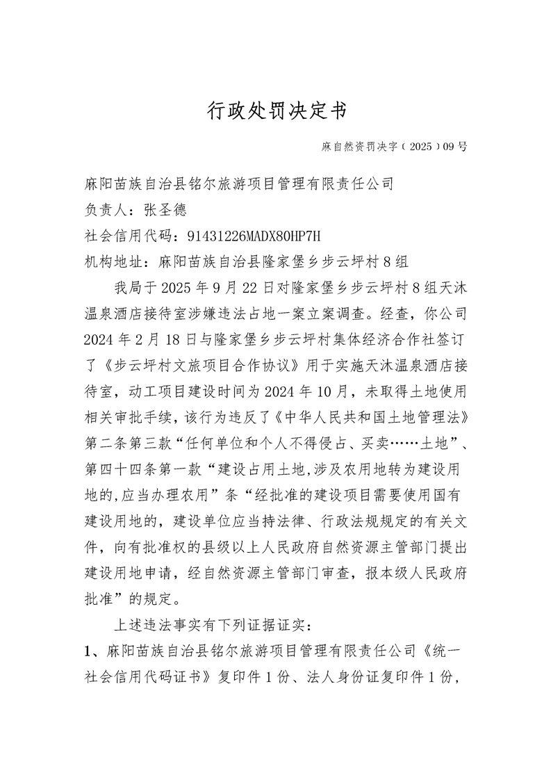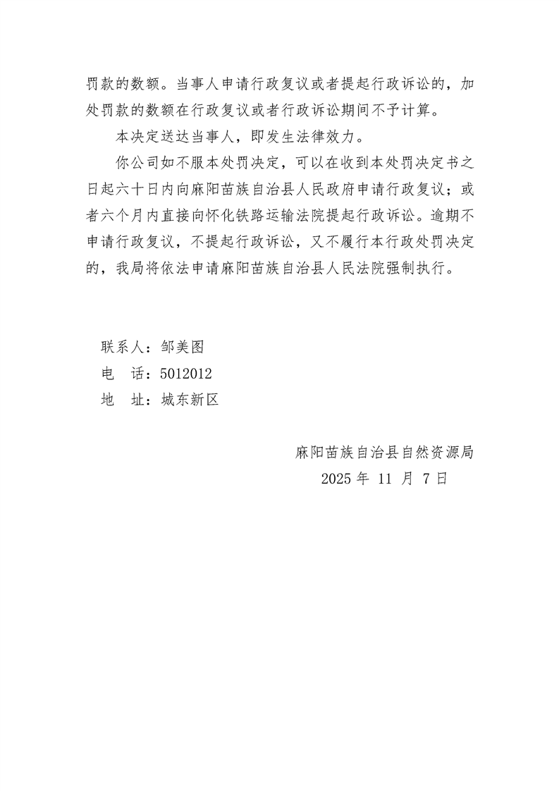 行政处罚决定书【2025】09号 麻阳苗族自治县人民政府 http://www.mayang.gov.cn 发布时间: 2025-11-18 15:01 【字体:大 小】 分享到 来源:麻阳县自然资源局 作者:
