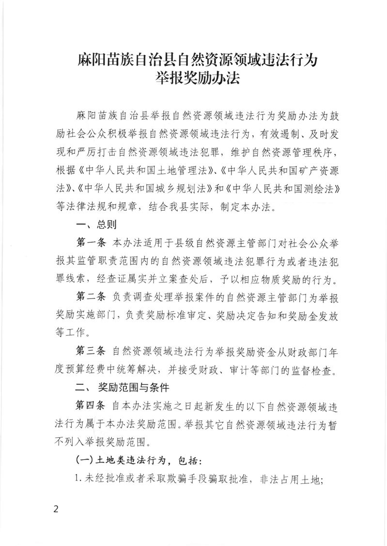 关于印发《麻阳苗族自治县自然资源领域违法行为举报奖励办法》的通知 麻阳苗族自治县人民政府 http://www.mayang.gov.cn 发布时间: 2026-04-08 09:24 【字体:大 小】 分享到 来源:麻阳县自然资源局 作者: