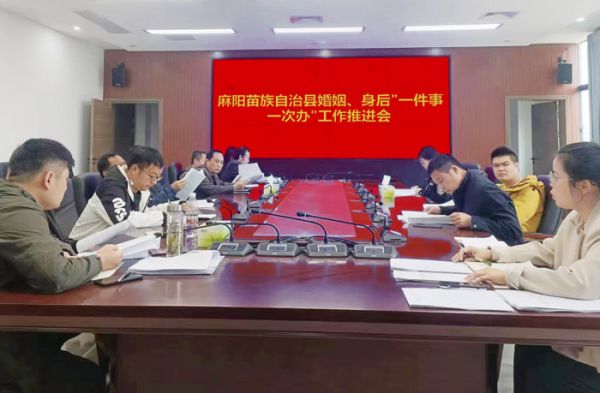 4月下旬,麻阳县政务服务中心组织县民政局、公安局、人社局、医保局、住房公积金中心、殡葬管理所等部门召开关于“婚姻”、“身后”一件事一次办工作推进会。对养老保险个人账户一次性待遇申领、职工遗嘱(抚恤)待遇申领、丧葬补助金申领、参保人员个人账户一次性支取(基本医疗保险)等7个事项进行整合集成,指导牵头部门和责任部门将联办事项整合成一件事,实现了“多表合一、一表申请”、“一套材料、一次提交”。