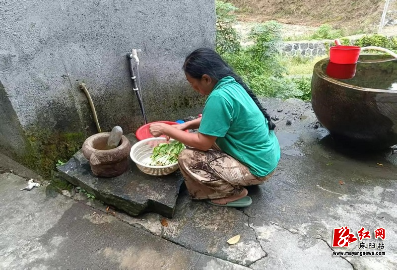 大湾村湾里院子村民正在用新接的山泉水洗菜做饭