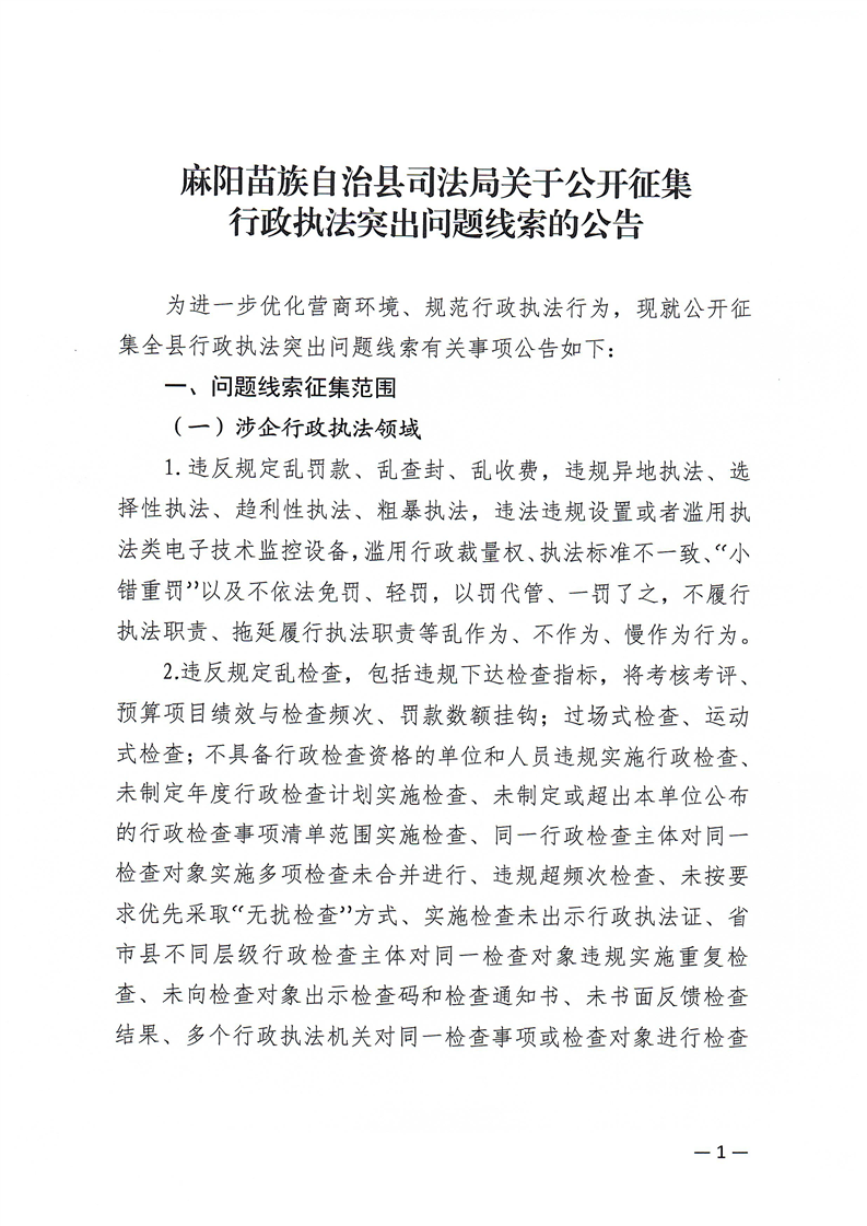 麻阳苗族自治县关于公开征集行政执法突出问题线索的公告 麻阳苗族自治县人民政府 http://www.mayang.gov.cn 发布时间: 2026-04-08 16:44 【字体:大 小】 分享到 来源:麻阳县司法局 作者: