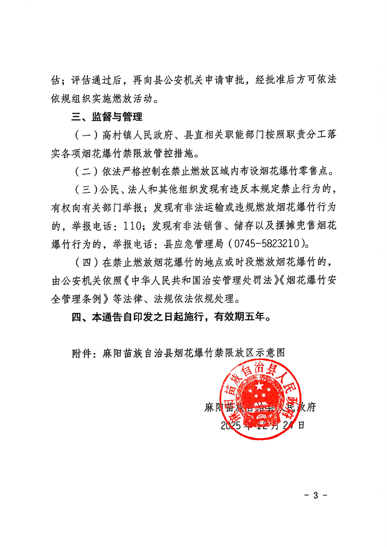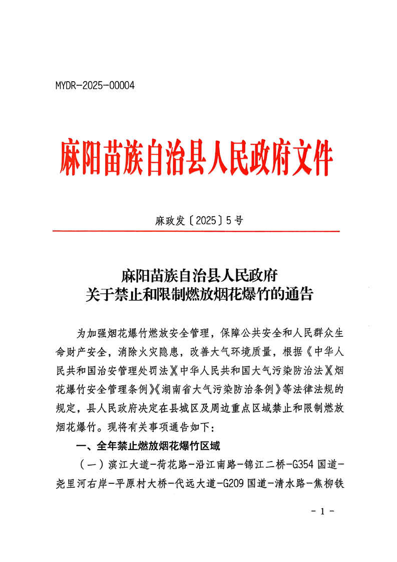 麻阳苗族自治县人民政府关于禁止和限制燃放烟花爆竹的通告