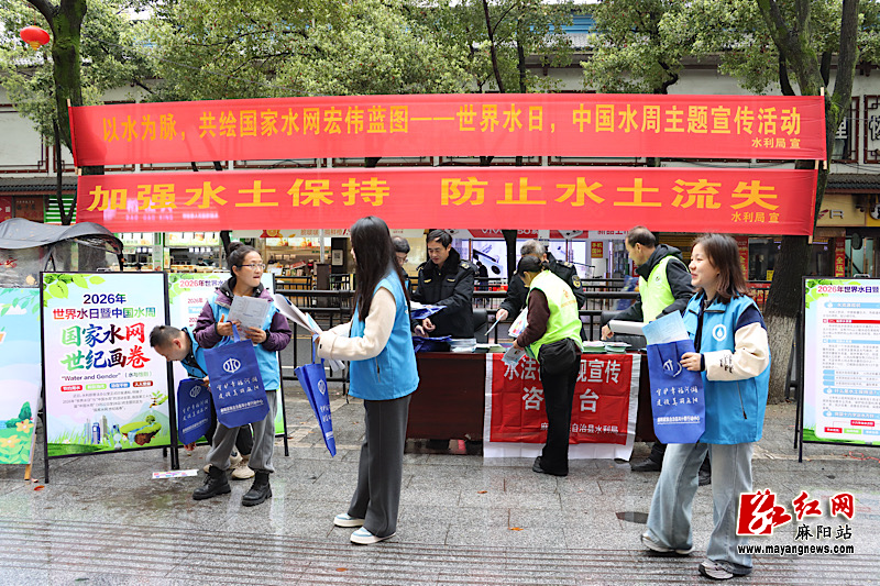 3月26日上午,麻阳水利局工作人员与“河小青”志愿者在县城步行街设立宣传咨询台。“以水为脉,共绘国家水网宏伟蓝图——世界水日、中国水周主题宣传活动”的横幅格外醒目,多块宣传展板依次排开,吸引了不少市民驻足观看。工作人员身着志愿者马甲,向过往群众发放宣传资料,耐心解答水资源保护、河湖管理、山洪灾害防御及水法律法规等方面的疑问。一张张宣传单页,将节水护水的绿色理念传递到市民手中。