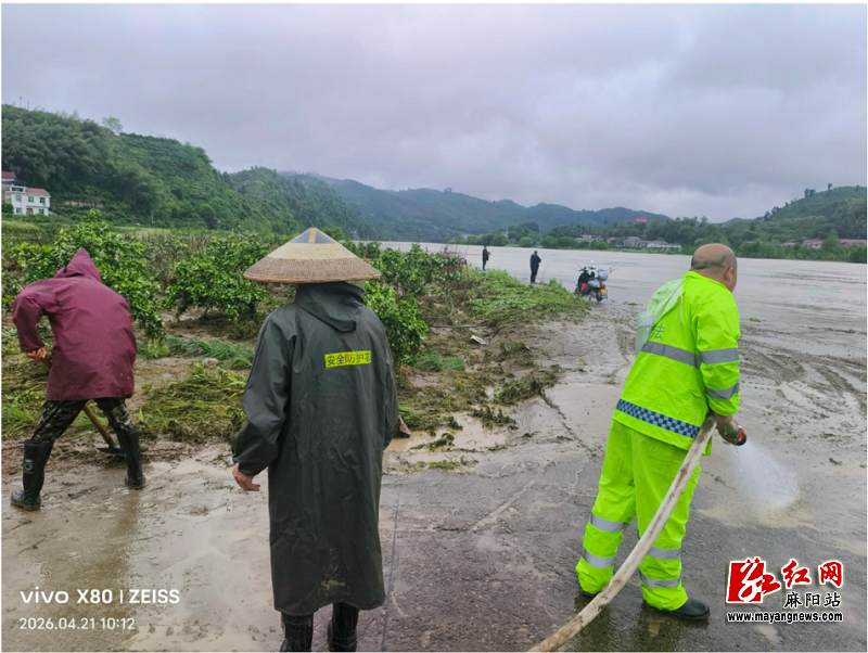 4月21日,雨势减弱,洪水渐退,麻阳迅速行动,全面开展清淤、除险、保畅专项行动,全力推进城乡交通、环境卫生秩序恢复工作。此次行动采取部门联动、上下协同模式,县城管部门组织环卫工人,高村镇组织社区人员,以锦江外滩、沿江休闲区、步道、绿化带等受淹区域为重点,集中力量开展清淤整治。工作人员分工协作,身着雨衣,头戴斗笠,手持铁铲、扫帚、水桶、高压水枪等工具,对路面厚积淤泥、残留积水、杂物及洪水遗留污染物进行全面铲除、清扫和冲洗,高效消除涝后痕迹,逐步恢复城区路面干净整洁,还原市容环境本色。