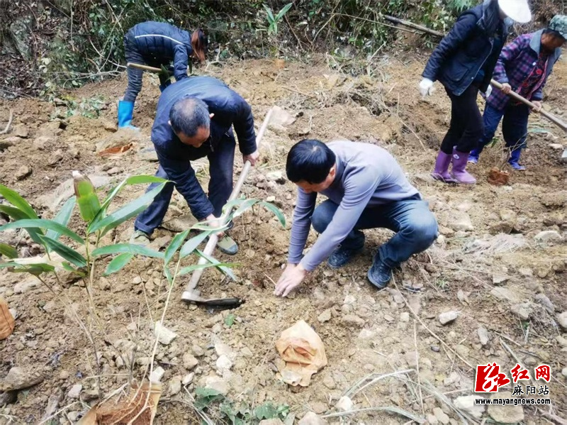 2月3日,走进大桥江乡大桥江村坨田湾院落林地内,只见20余名村民躬身俯首、挽着衣袖忙碌着。在种植技术员安排指导下,他们有的用锄头挖坑填土,有的精心调整株距,有的双手小心扶苗,让一株株粽叶幼苗稳稳扎根在松软的林土里。