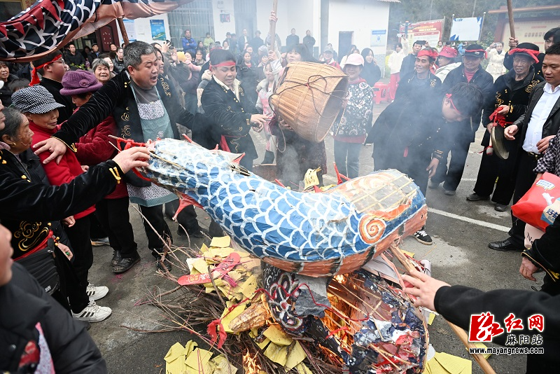 按照苗乡传统,舞了一年的龙灯、灯牌、灯笼,要在烈火中焚化,送龙归天。熊熊大火燃起,映红了每一张虔诚的脸庞。村民们相信,这火烧去的不仅是竹篾与彩纸,更是过往一年的尘埃与烦忧。