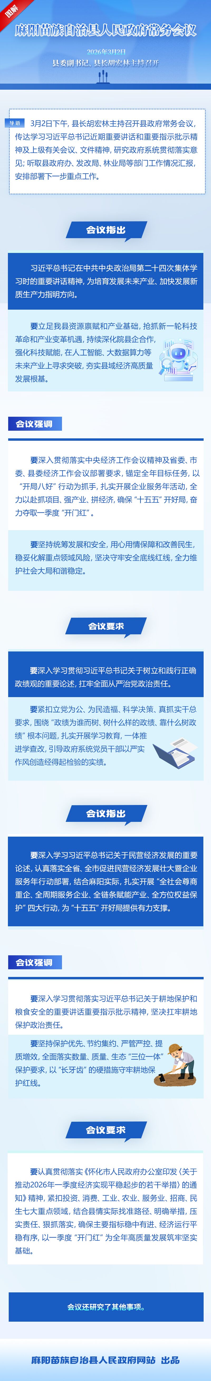 图解:2026年3月2日麻阳苗族自治县人民政府常务会议 麻阳苗族自治县人民政府 http://www.mayang.gov.cn 发布时间: 2026-03-05 10:07 【字体:大 小】 相关会议 展开 胡宏林主持召开县人民政府常务会议(3月2日) 分享到 来源:麻阳县政务服务中心 作者: