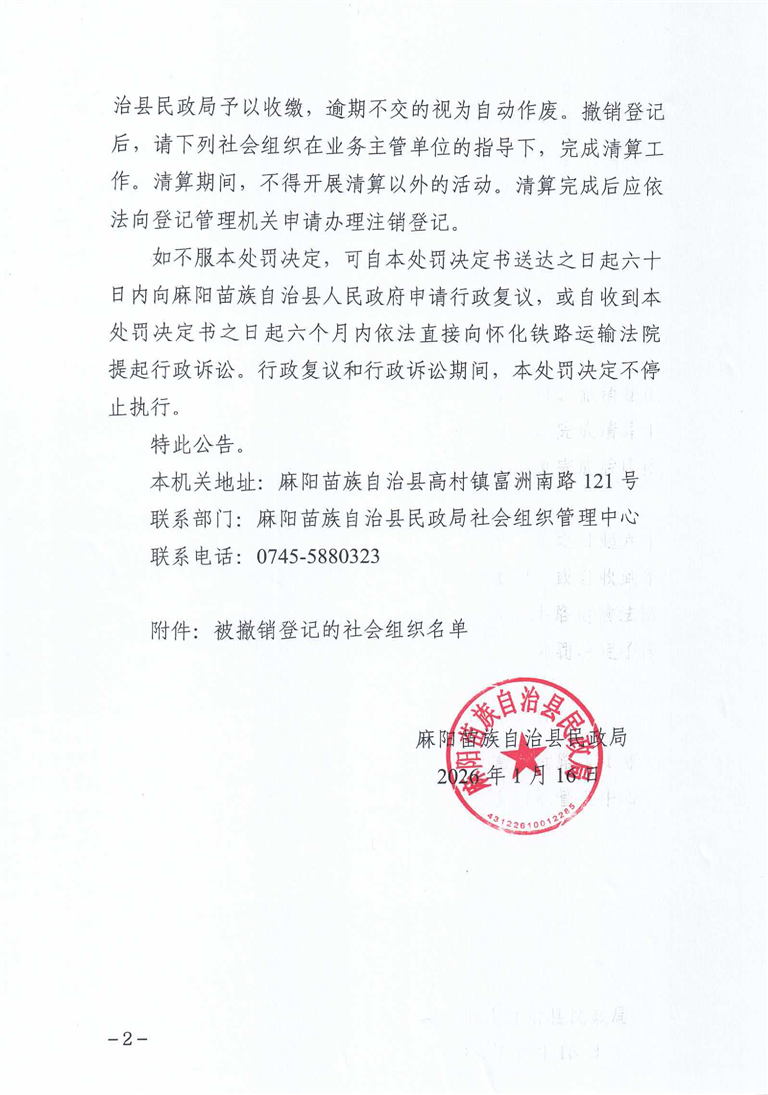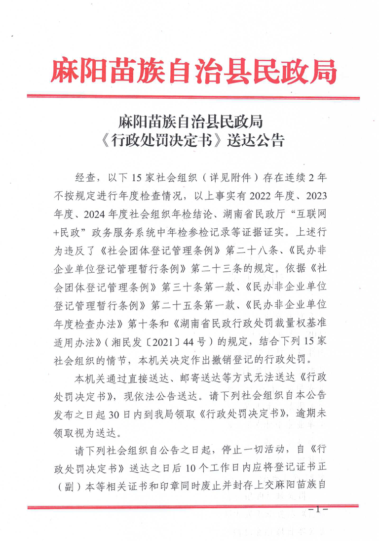 麻阳苗族自治县民政局《行政处罚决定书》送达公告 麻阳苗族自治县人民政府 http://www.mayang.gov.cn 发布时间: 2026-01-16 10:46 【字体:大 小】 分享到 来源:麻阳县民政局 作者: