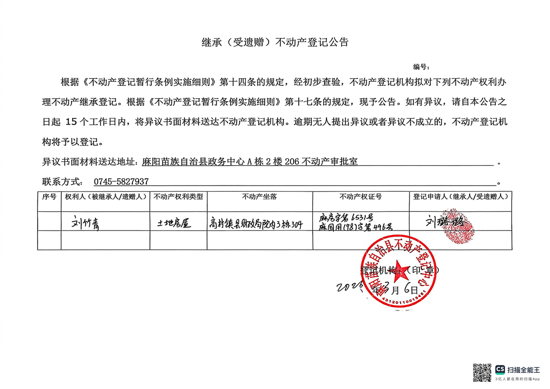 刘璐璐继承公示