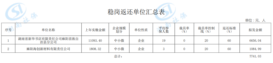 失业保险稳岗返还补贴表公示4 麻阳苗族自治县人民政府 http://www.mayang.gov.cn 发布时间: 2025-11-12 09:37 【字体:大 小】 分享到 来源:麻阳县人力资源和社会保障局 作者:
