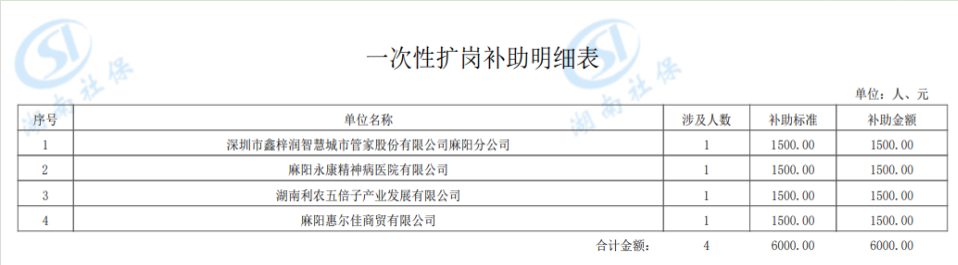 一次性扩岗补助名单公示4 麻阳苗族自治县人民政府 http://www.mayang.gov.cn 发布时间: 2025-11-20 11:38 【字体:大 小】 分享到 来源:麻阳县人力资源和社会保障局 作者: