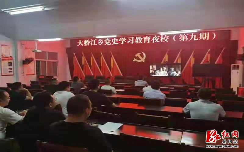 自今年4月28日起,麻阳大桥江乡党委组织开展“党史学习教育夜校”专题学习。该夜校每天举行一期,每期从晚上6时开始到8时结束,学习内容包括集体观看一部红色经典电影,进行一场专题讨论。
