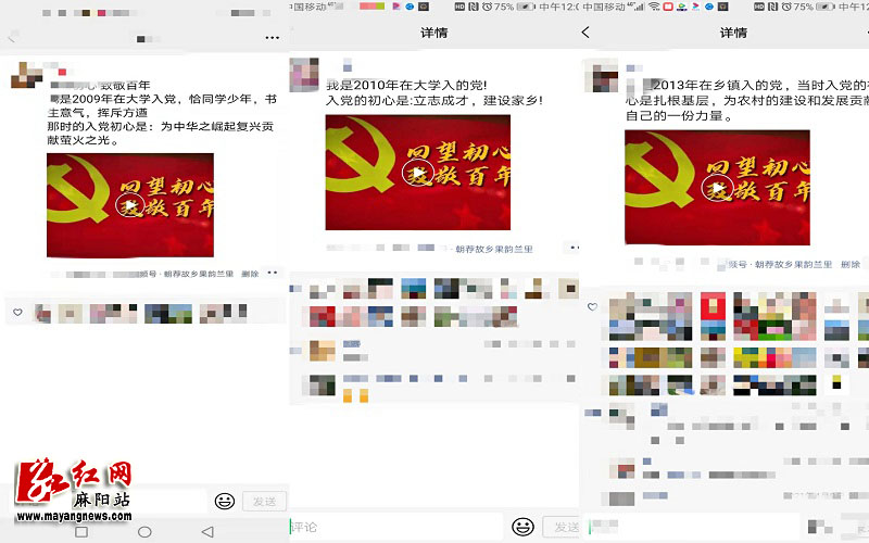 兰里镇党员们在微信转发党史学习教育短视频时述说入党初心