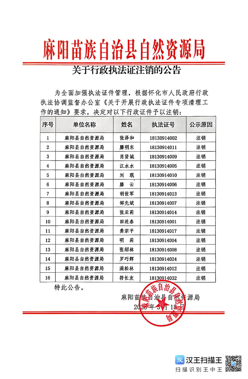 关于行政执法证注销的公告