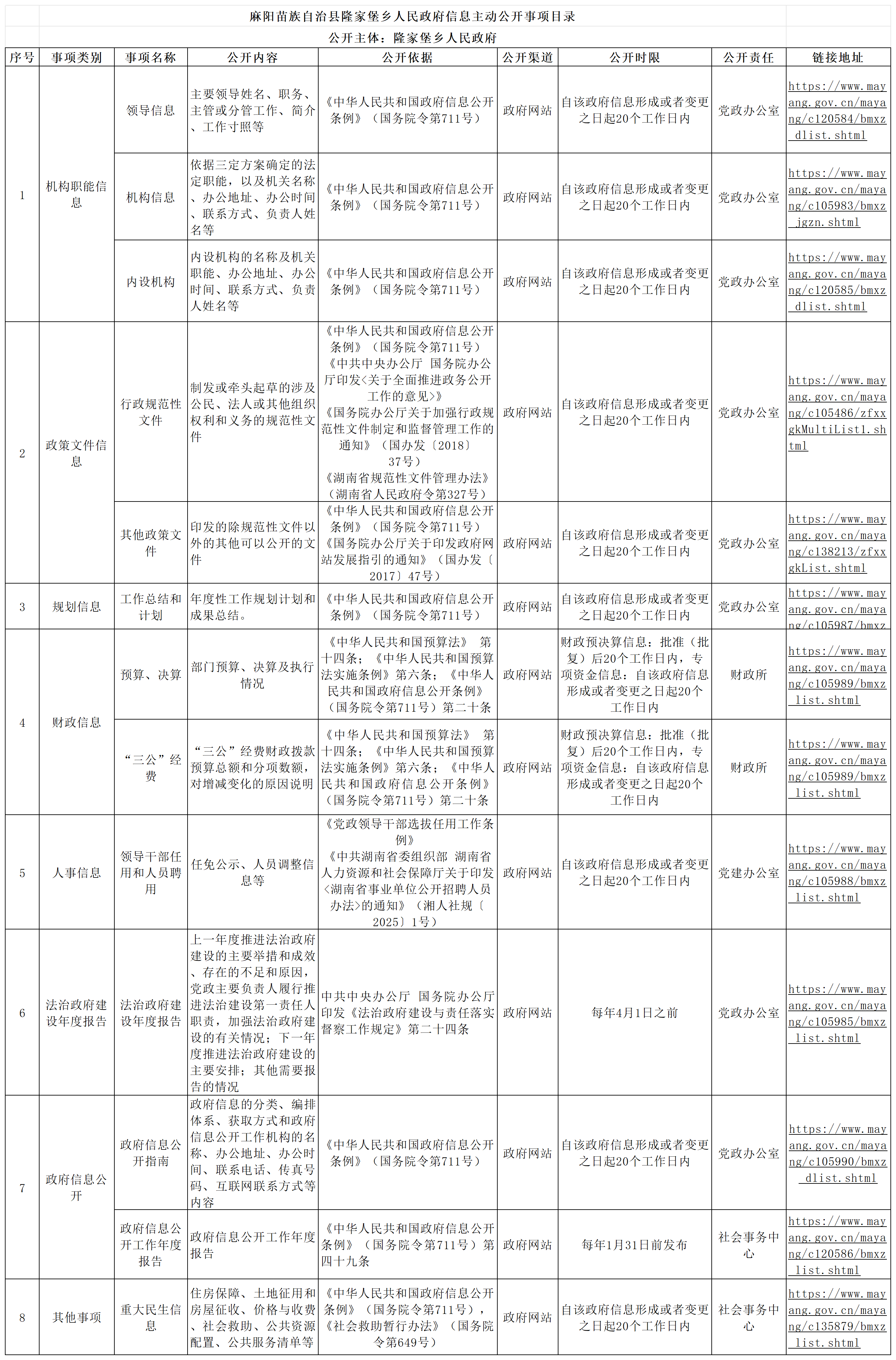 麻阳苗族自治县隆家堡乡人民政府信息主动公开事项目录 麻阳苗族自治县人民政府 http://www.mayang.gov.cn 发布时间: 2026-01-29 11:13 【字体:大 小】 相关附件 展开 麻阳苗族自治县隆家堡乡人民政府信息主动公开事项目录.xlsx 分享到 来源:麻阳县隆家堡乡 作者: