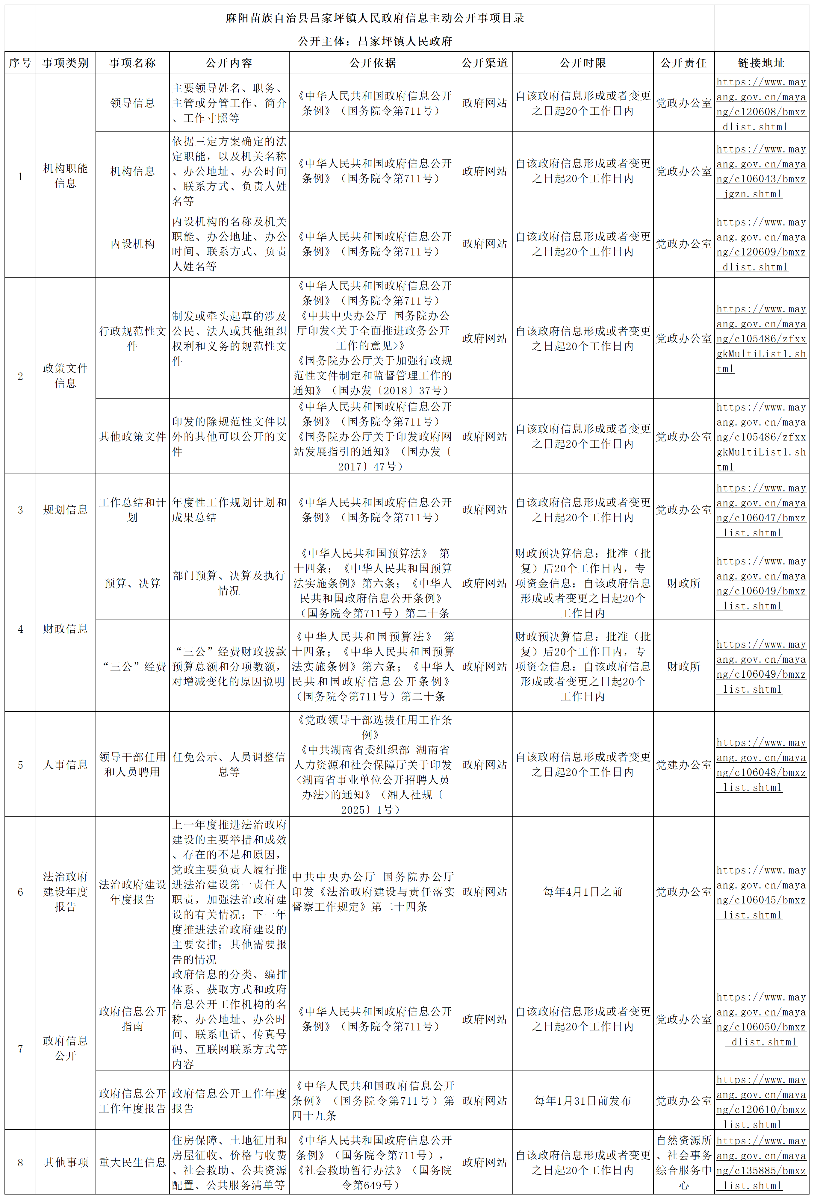 麻阳苗族自治县吕家坪镇人民政府信息主动公开事项目录 麻阳苗族自治县人民政府 http://www.mayang.gov.cn 发布时间: 2026-01-29 11:07 【字体:大 小】 相关附件 展开 麻阳苗族自治县吕家坪镇人民政府信息主动公开事项目录.xlsx 分享到 来源:麻阳县吕家坪镇 作者: