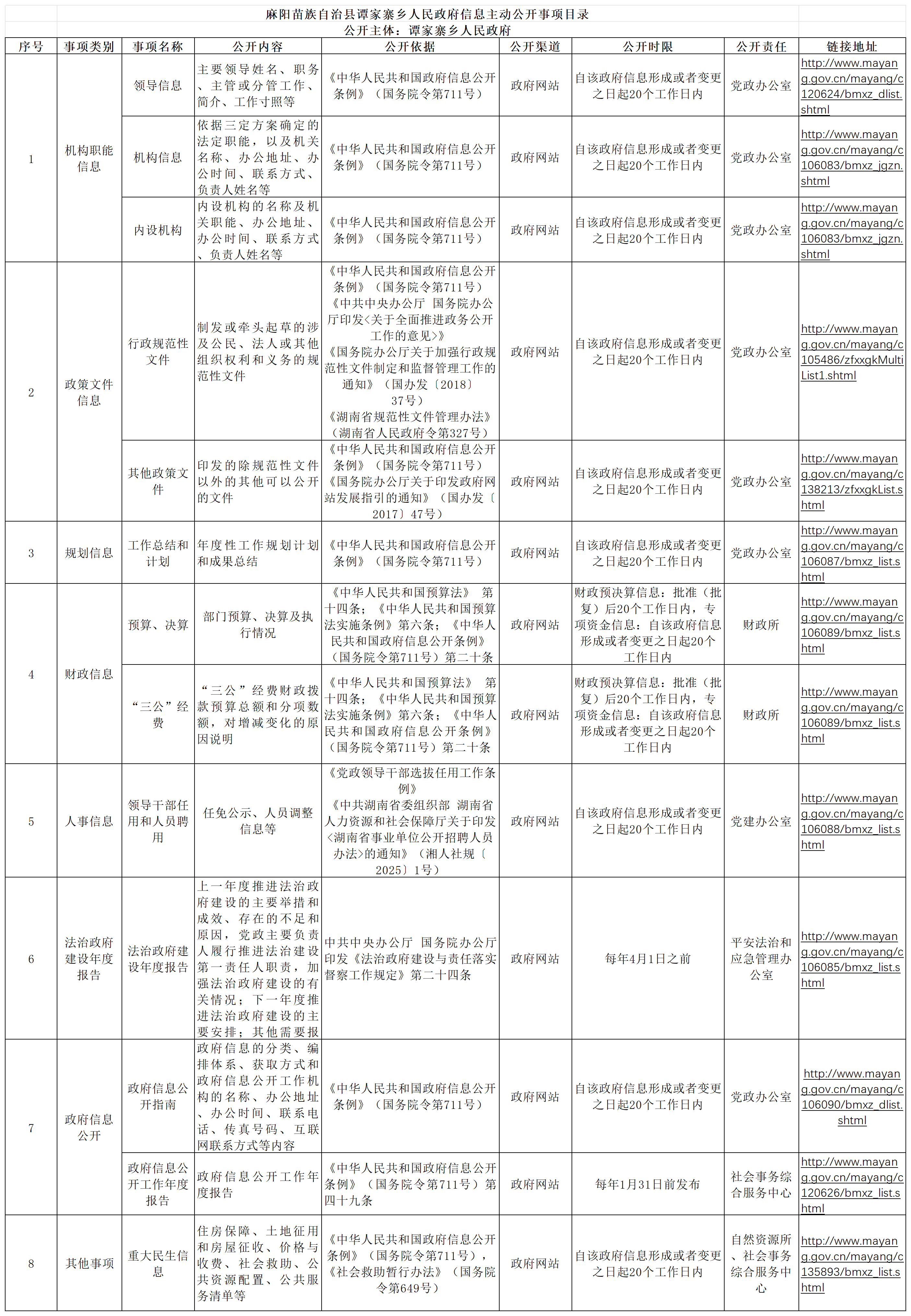 麻阳苗族自治县谭家寨乡人民政府信息主动公开事项目录 麻阳苗族自治县人民政府 http://www.mayang.gov.cn 发布时间: 2026-01-29 15:11 【字体:大 小】 相关附件 展开 麻阳苗族自治县谭家寨乡主动公开事项.xlsx 分享到 来源:麻阳县谭家寨乡 作者:
