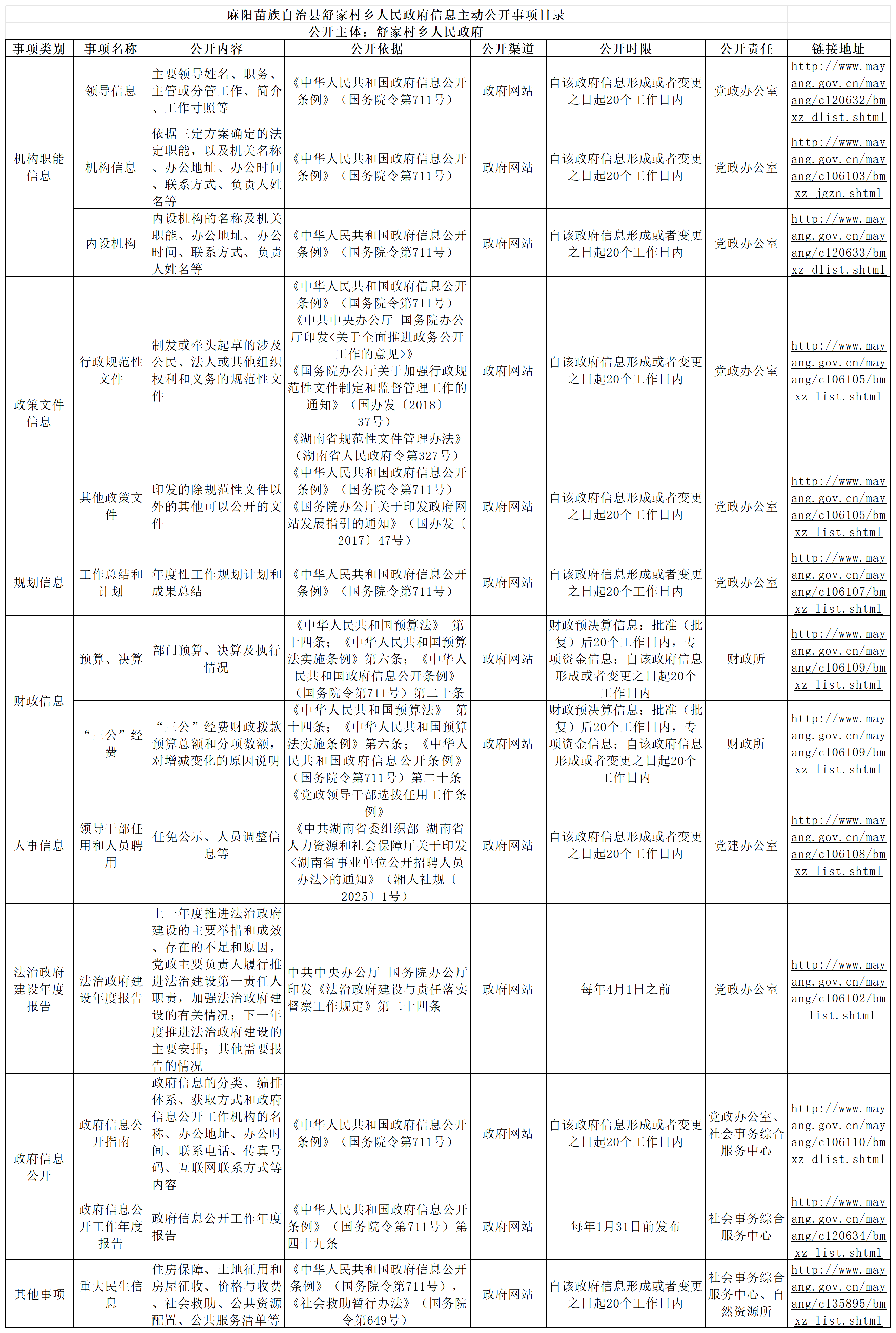 麻阳苗族自治县舒家村乡人民政府信息主动公开事项目录 麻阳苗族自治县人民政府 http://www.mayang.gov.cn 发布时间: 2026-01-29 09:54 【字体:大 小】 相关附件 展开 麻阳苗族自治县舒家村乡人民政府信息主动公开事项目录.xlsx 分享到 来源:麻阳县舒家村乡 作者: