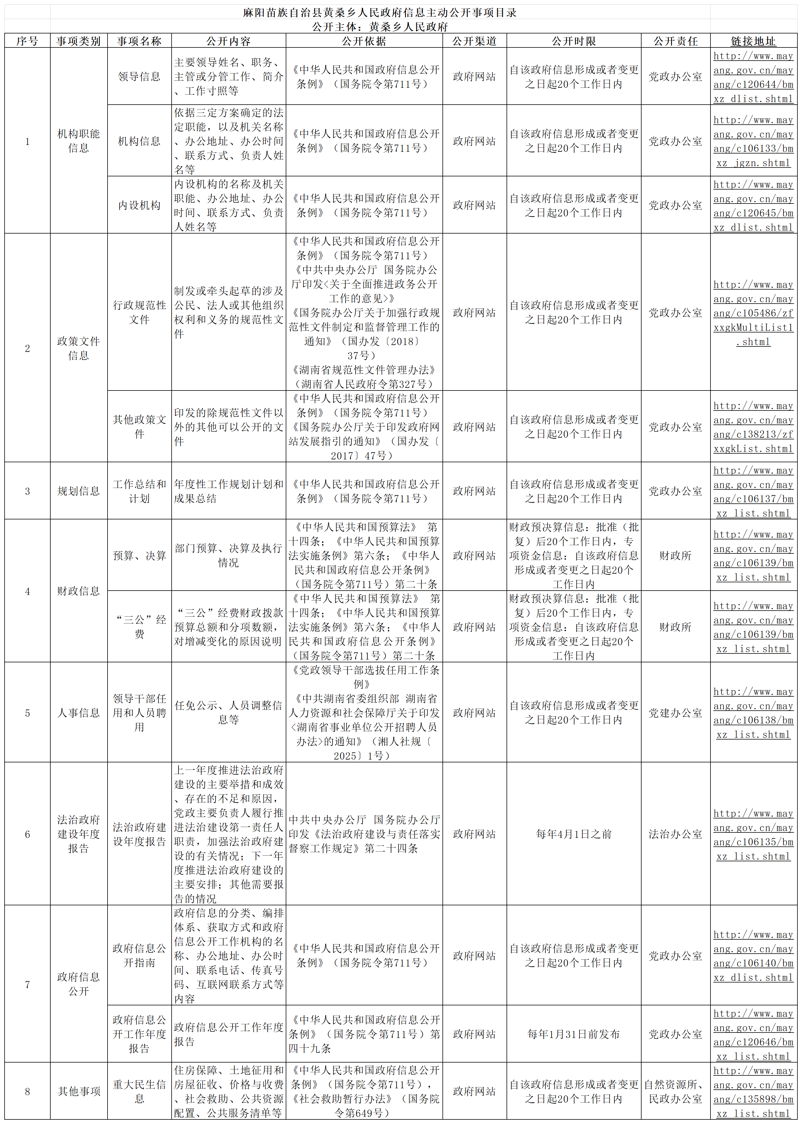 麻阳苗族自治县黄桑乡人民政府信息主动公开事项目录 麻阳苗族自治县人民政府 http://www.mayang.gov.cn 发布时间: 2026-01-29 15:06 【字体:大 小】 相关附件 展开 麻阳苗族自治县黄桑乡人民政府信息主动公开事项目录.xlsx 分享到 来源:麻阳县黄桑乡 作者: